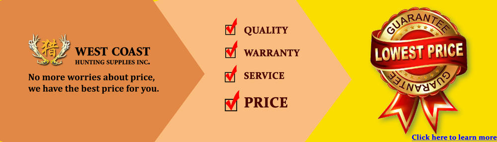 If you ordered an item on westcoasthunting.ca, and if the item is offered at a lower price in other stores prior you picking it up, we will initiate the price beat process for you when you visit our store.