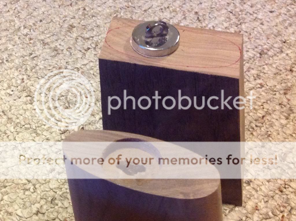 At the start of this project I had made 6 of these thinking I would need to try a couple different attachments. The magnet was my first try and it has worked so well that I gave up on the other options. Currently, I have one that is finished completely, one that is ready for the magnet install but is not stained, and 4 others that are cut to the proper angles but not shaped. Was just trying to decide if I should finish the rest and throw them on EE in a week or two.