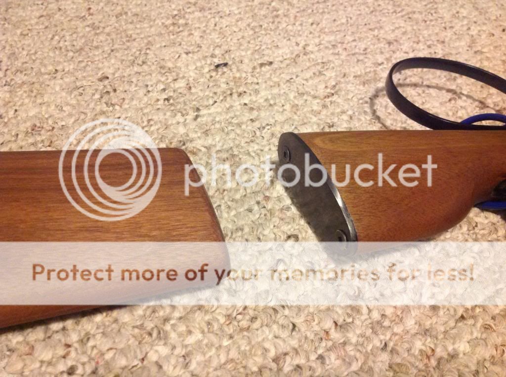I have made a black walnut wood stock extension that is held on by a rare earth magnet. the screws heads on the butt plate prevent the stock extension from rotating. Note, I had to change the screws on mine since one was stripped from factory.
