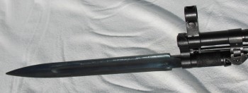 I had a hankering to experiment with stock finish and bayo finish. So I took this one out of cosmoline, blued the buttplate, bolt carrier, removed chrome plating off bayo and blued it too. Then refinished the stock going for a blacked out look but with some style. I think I will name her Black Sonja...