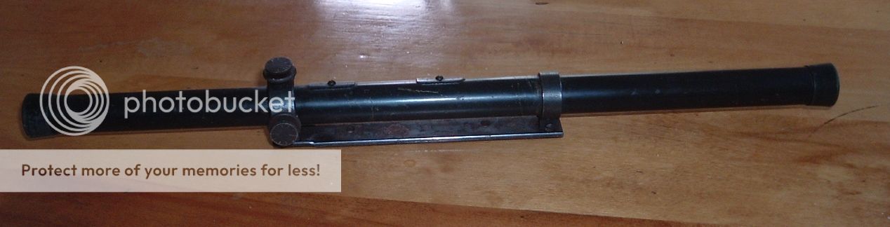 I picked up this old 3/4" dia. scope recently, It has no marking on the tube, only Ward's on the mount, but on-line searching suggests it has similarities to early Mossberg sights. It has an internal "cartridge" type brass lense holder and has flaked lenses and maybe one missing. I can see fine cross hairs. It is 15.5 inches long.