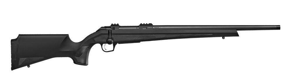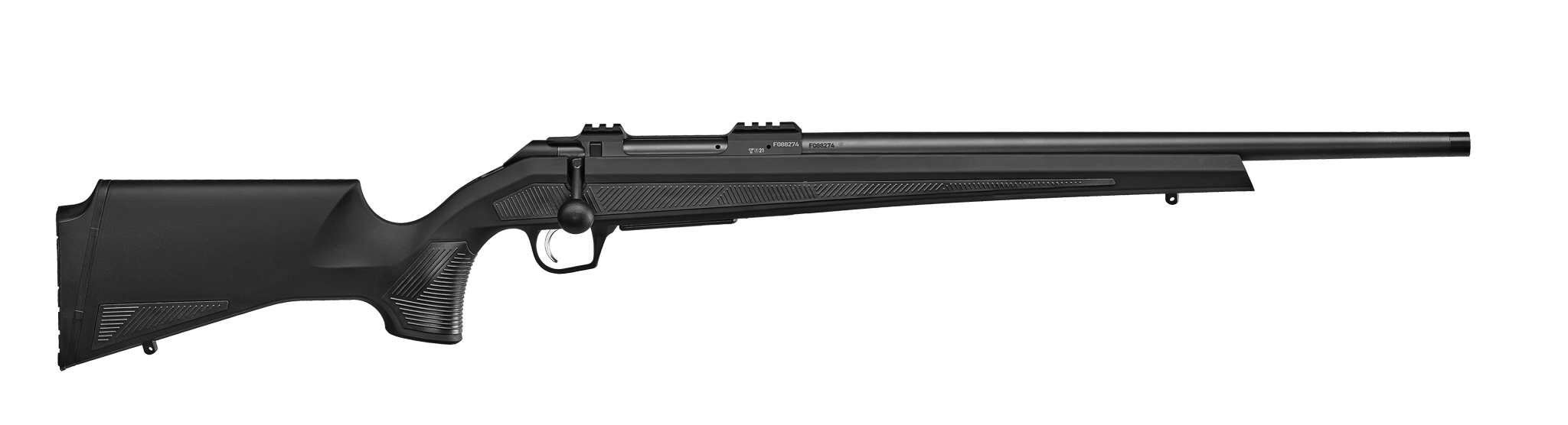 8×57 IS (8mm Mauser) in a modern bolt-action package. 21" cold hammer-forged barrel, aluminum receiver, fiber-reinforced polymer stock, integrated rail, threaded muzzle. Sub-MOA guarantee.