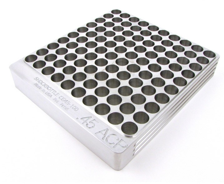 We just received a shipment of the Shockbottle 100 round cases gauages at our Canadian store. These are the premier competition case gauges that are made on the tight side of SAAMI Specs. That ensures that if the round fits in the gauge, it will run in any gun. Many competition guns are chambered on the tight side so other brands of case gauges can allow rounds that will not function in your firearm.