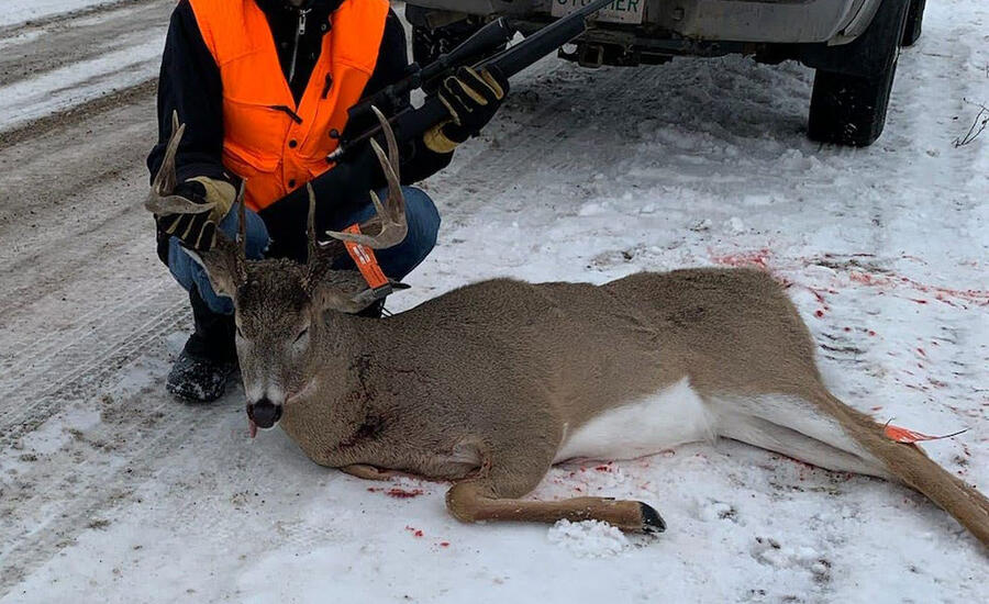 After a morning seeing only does, we're ready for lunch so time to fly back into town, fill up with gas and try again in the evening. A short time later, we both catch a flash of a buck and a doe, just the faces really, bedded down in willows just on the other side of the ditch. Dad resists the urge to slam on the brakes! We drive about a kilometer more, turn around and make a game plan. The buck never got up from that nap. In the excitement we forgot about the doe in our game plan, and could have filled a second antlerless tag but oh well one is enough this year. Later in the day I got a double on Hungarian partridge using an Ithaca 37 bought from jimbow47. Damn I love CGN.