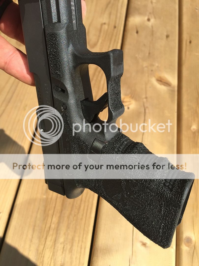 Anyhow, I think just about any Glock shooter would agree that the trigger guard is either molded too thick or too low on the frame and "needs" some relief at that spot (Gen 5 anyone?)