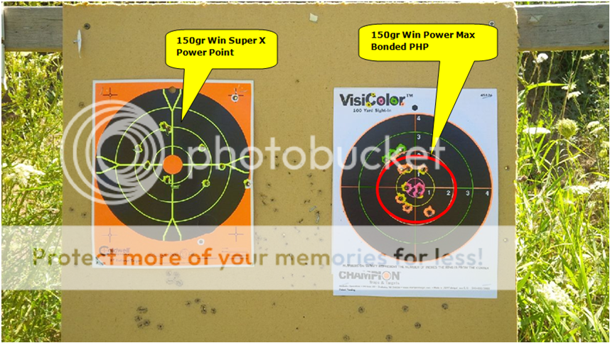 UPDATED PIC - Cleaned and used my backpack as a rest, this is at 100 yards. Nothing to far out now. Still not grouping like I hoped, 3.3 inch grouping. May try 130 grain.