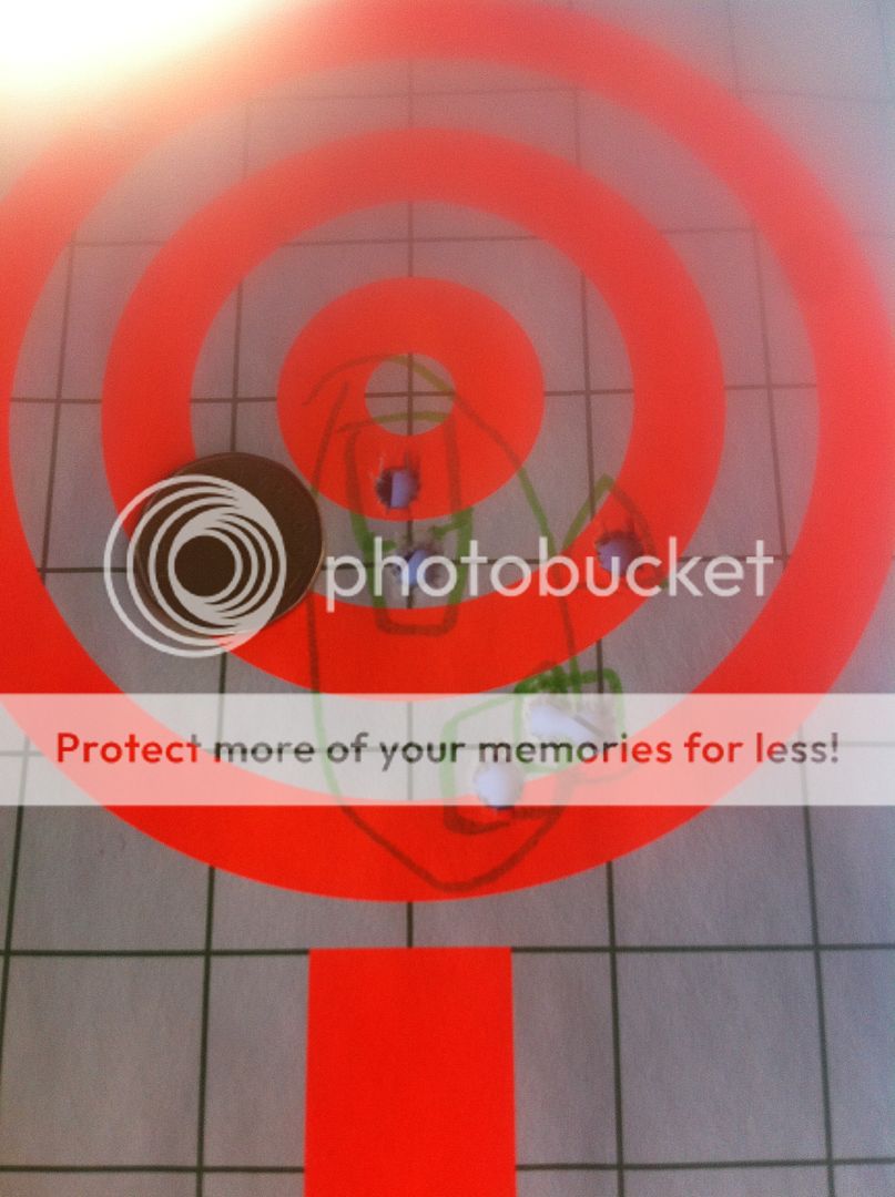 UPDATED PIC - Cleaned and used my backpack as a rest, this is at 100 yards. Nothing to far out now. Still not grouping like I hoped, 3.3 inch grouping. May try 130 grain.
