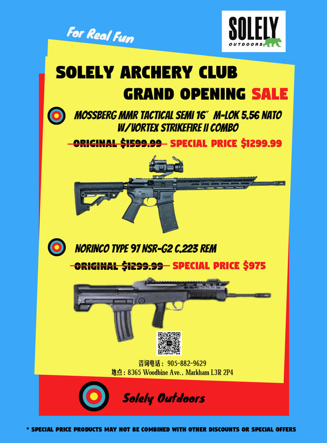 SolelyOutdoors CGN Regular Business Member Rating - 100% 9 0 0 Location 44 Riviera Dr L3R 5M1 Markham, ON Oct 7, 2019 #1 *Ammo needs to be picked up at the store! Attachments tejiazidan.jpg 82.5 KB · Views: 196 FIREARM SPECIAL PRICE.jpg 101.4 KB · Views: 194