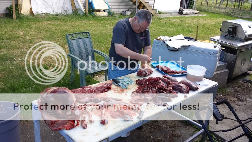 quite a few years ago I was on an Alberta wilderness hunt with some friends. I shot a bull elk on the first day hunting, as well another hunter shot a bear. there was 8 hunters in the group so it required a lat of meat per meal to feed everybody.