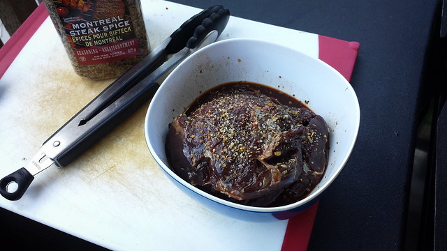 I love spring bear, especially from around central Vancouver Island. All they have eaten is grasses and other vegetation, makes them taste very beef-like. The steaks didn't have a touch of game to them. All I did was add a bit of soy sauce as they were thawing and sprinkled on a bit of Montreal Steak Spice.