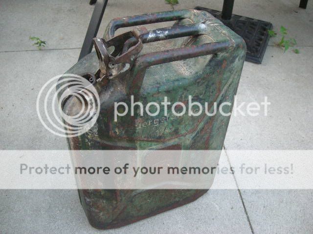 The only reason it had'nt rusted to bits was the fact that grandma used it to store punky olive oil she used to make soap with. Took up the better part of a suitcase but my old man surprised me with it when he brought it back to Canada for me. IIRC it's a 1941 model, manufactured by Brose, the outside paint is faded and full of surface rust in sections but it's still leakproof. I was toying with repainting it but I think I'll just leave the "rustic" original patina and rust on.