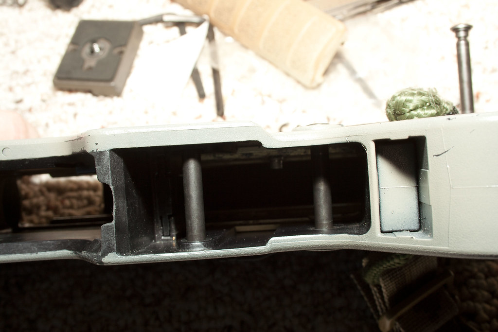 The next day after I removed the bolt and started inspecting it, I notice out of the corner of my eye, an extra hole in my gun. At first I thought my mesa tactical quick release sling adapter had fallen out.But it was the wrong hole. It was the hole just forward of the sling hole. The pin had rattled loose and fell out into my gun case! I slide the sucker back in. Secured it properly with the little pin and function tested the rifle. Worked like normal. Took it out and tested it and she fired just like she should.