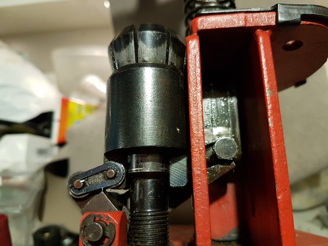 The sliding bar (inside the main shaft) is connected at the bottom to the lever that brings the collet around the fingers up so that looks good.