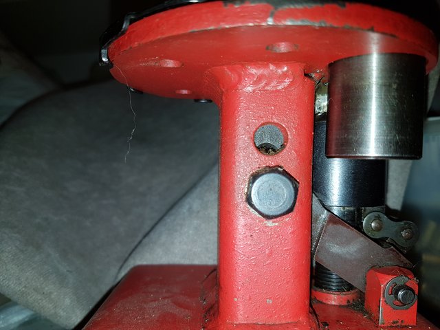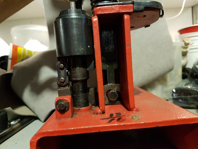 At the top the sliding bar has a "hook" at the back that is supposed to be engaged by the handle action to move the sliding bar down but the hook is all the way up so the handle action is not engaging the hook so no resizing takes place.