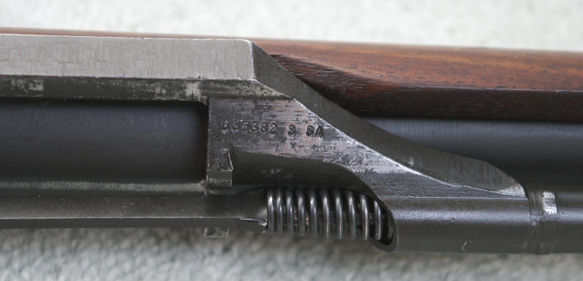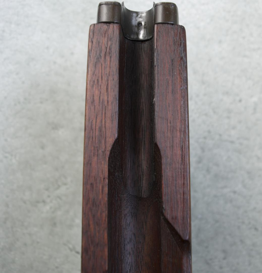 For the most part, I'll let the pictures do the talking, but there are a few interesting characteristics worth noting. First is the early GHS cartouched stock. These were used from late 1940 to mid 1942, but what makes this one especially interesting is that it is a long channel stock. The transition from long to short channel was made at around s/n 400,000 (or so we think).