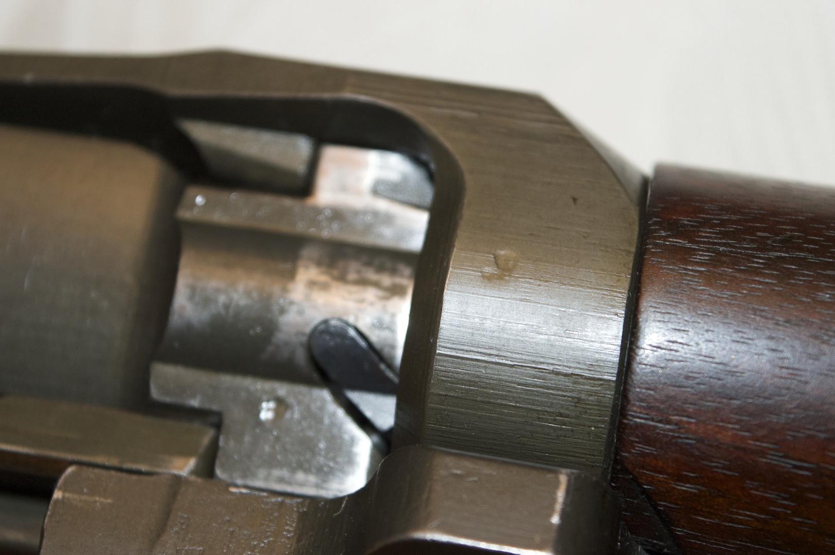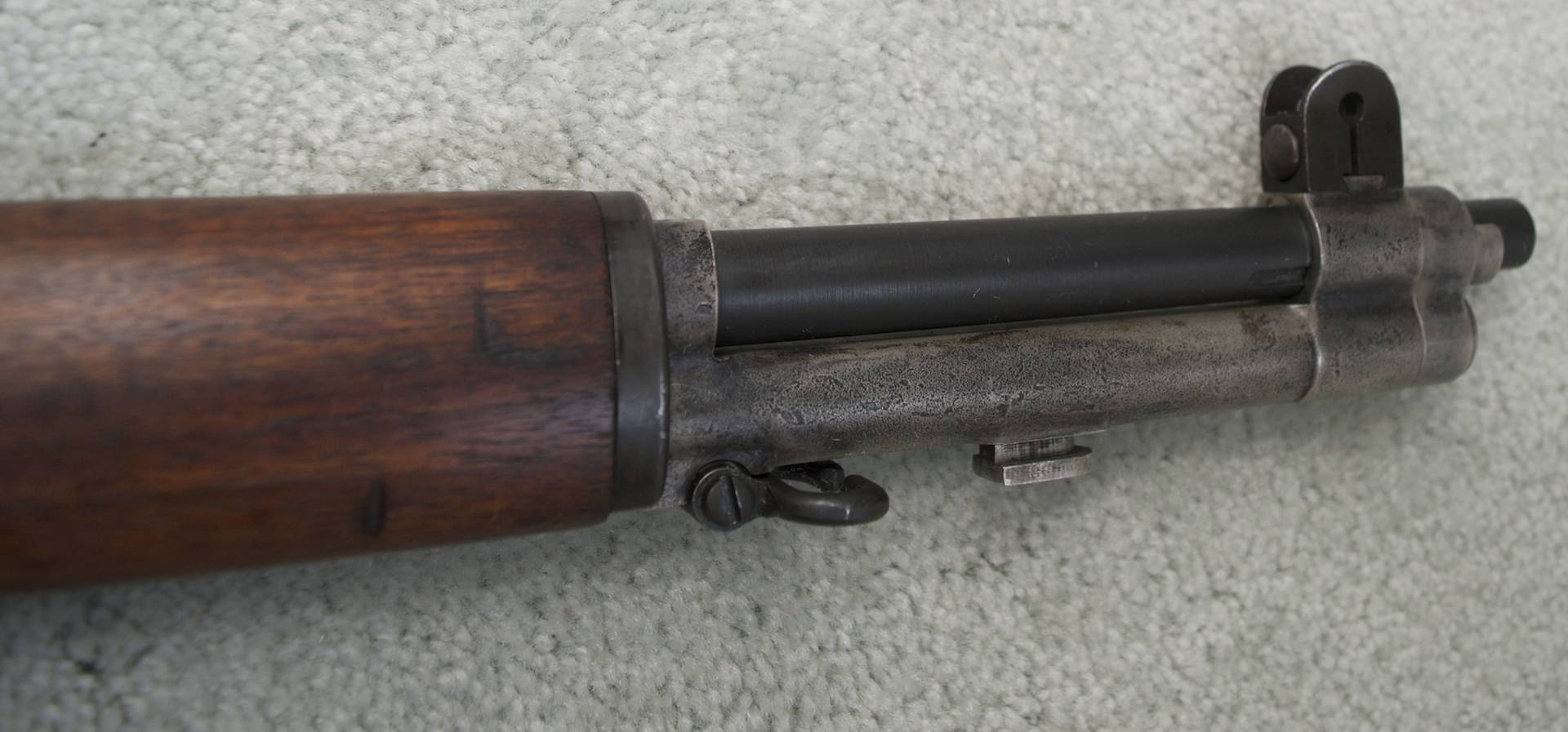 Finally I'll note that this rifle does not have any red paint on the hand guard, but is easily recognized as a lend lease when the operating rod has been pulled back. Here you'll find a slew of British markings.