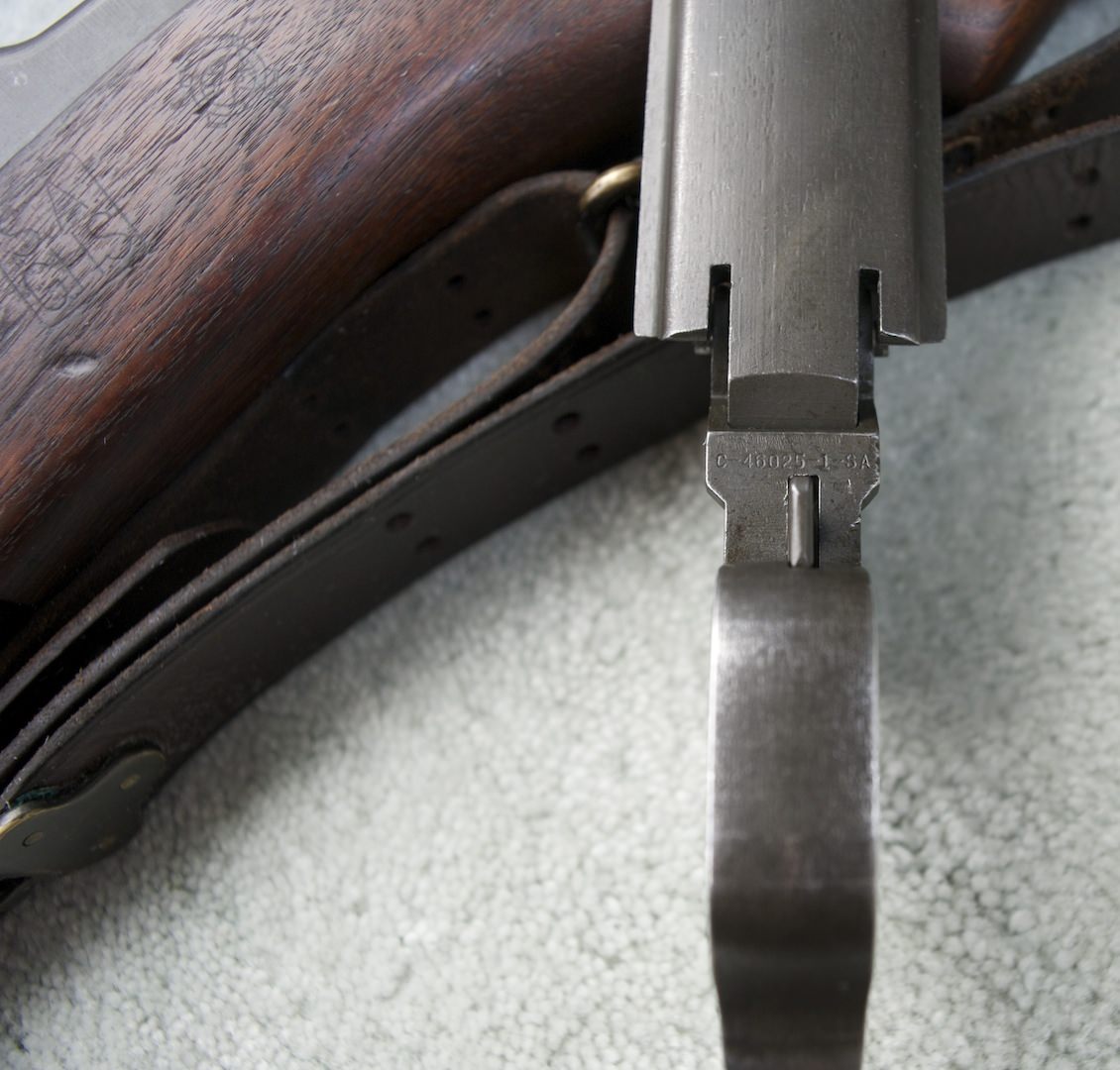 This particular example is 1 of about 38,000 which was sent to the English during the lend lease program before the United States entered the war. It is manufactured in September of 1941 and for this reason, displays a number of early "obsolete" parts which were quickly replaced on later examples. The vast majority of M1 Rifles which were manufactured at this time were lost in the jungles of the Pacific Theater so the lend leased rifles are often considered to be the closest thing we have today to snap shots of M1 production during late 1941 to early 1942.
