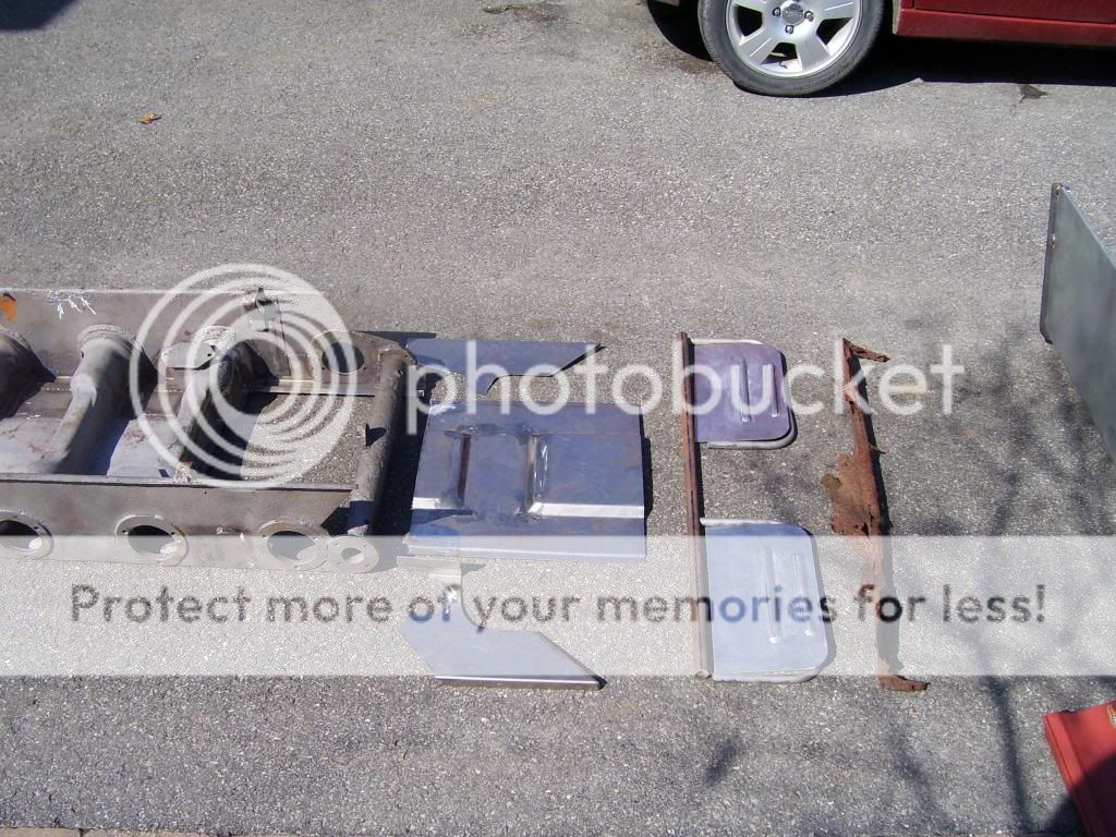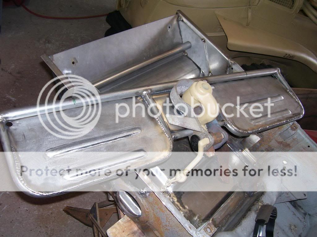 More small details, the D shaped part where the exhaust passes out of the inner body to the muffler, the little tray like thing for when engine oils is drained (I even copied the pattern of original spot welds when I reinstalled the new tray) and the finished latches/handles for the body drains.