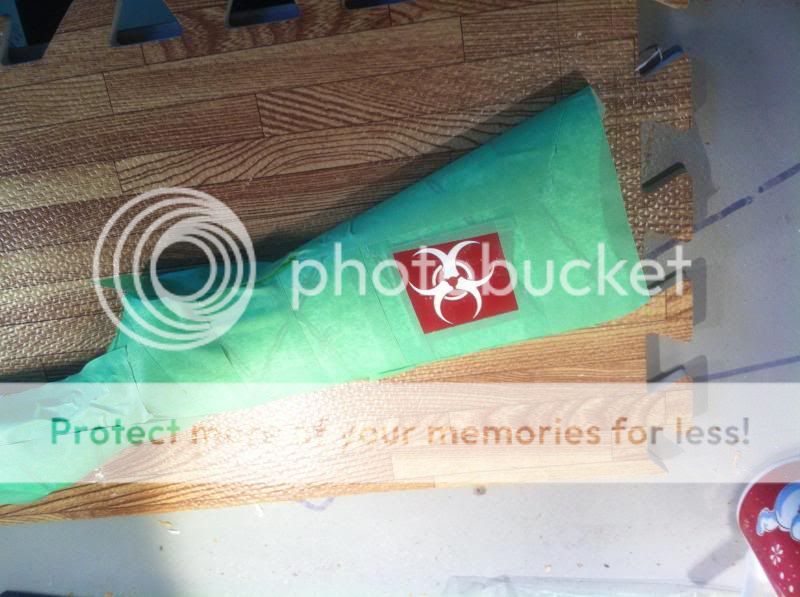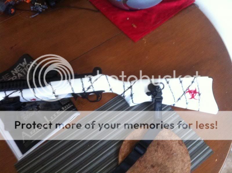 Wood stock painted using Alumahide and krylon and bulldogarms template