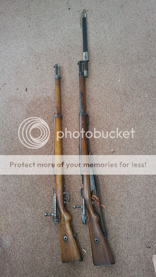 The light colored rifle is a typical m38 turk Mauser, it's got about 20 different serial numbers and almost no bluing. It's the first rifle I ever bought on cgn, I took one look at the pictures and fell in love with that beautiful Circassion walnut stock and had to have it. I still admire it to this day and it's probably the most beat up rifle in my rack, too bad these things can't talk.