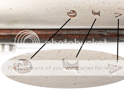 PB/P stamp on the bayonet ricasso which is a Harpers Ferry inspector's marking for Phillip Burkhart, the foreman of the barrel shop.