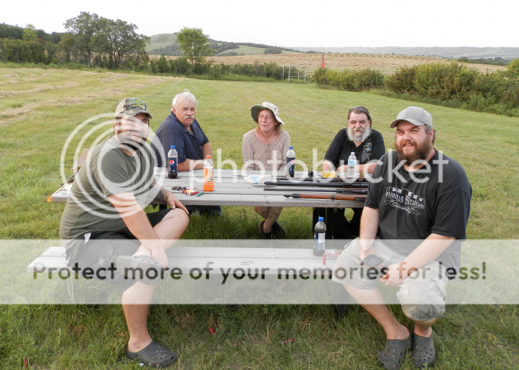 A group photo. Left to right, Tinman204, Buffdog, Twosteam, Smellie and Walter Sobchak. Walter was making lunch, and had a BBQ going on the tailgate of the truck with Hamburgers, so we took a bit of time to relax near the end of the day. Those burgers and potato salad tasted good. (That boy is so big I think he should change his CGN name from Walter Sobchak to "Bear Defence.")