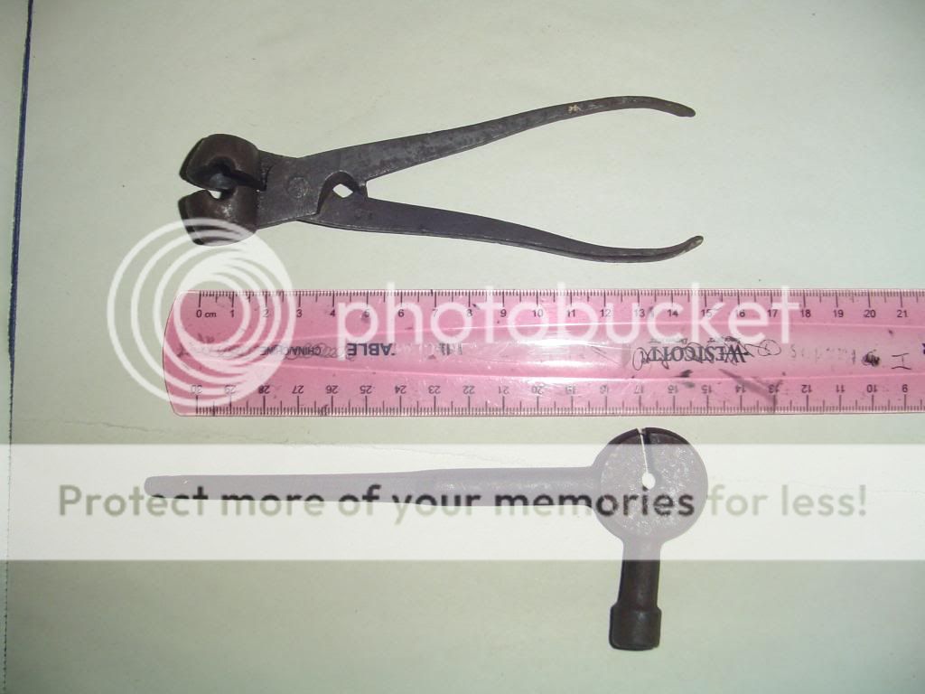 I picked up an old bullet mold at a yard sale, and it came with this little hammer thing, not sure if it's used for anything black powder related. Pretty sure it is not a ball starter, the hammerhead part is not concave, the handle part is tapered and flat, more like a screwdriver end? It seems to be cast as it has a seam down the side. Maybe a blacksmith's or farrier tool? Any ideas? The bullet mold is fairly big, maybe .54 or .60 cal? Appears to be hand forged.