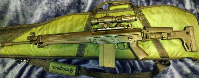 I am a huge believer in the ACR retractable/folding stock and GS Designs FAMAE adapter. Granted it works best on the .308 SG 542 with its slightly longer receiver, but so long as you don't ride your hand too high on the Pistol Grip it works fine on the shorter 540 and 543 Receivers. The higher line of the Cheek-Rest with the ACR stock brings the line of sight up perfect for an optic such as the Spectre DR (perfect on a 543) or for an LPVO in a cantilever mount such as the American Defence mounts. Here's my 543 with the ACR Buttstock: