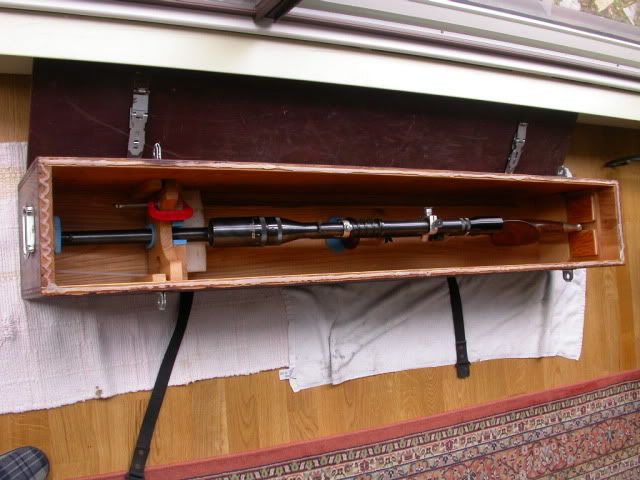 The following images show the substantial "wagon Box" that I made to protect the rifle and the scope.