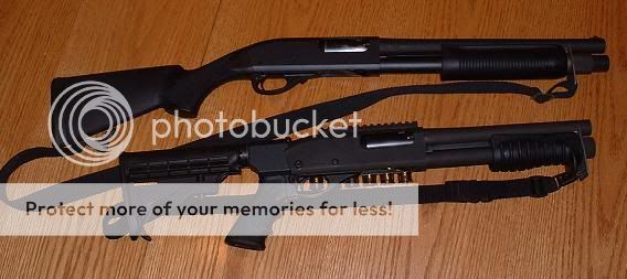 They are making me two barrels: First one will be a 12.5" with 3.5" chamber with no sights for my current Rem 870 Super Mag (evil flash hider on the end, +1 extention, will be same as 14" barrel at the end), and eventually a 6.5" 3.5" chambered barrel for my newly imported restricted Rem 870 Super Mag receiver. The 6.5" will have a custom barrel retaining ring and setup, custom 870 action bars, custom 870 mag tube, HK MP5K PDW front pistol grip (or fold down pistol grip, havn't decided yet). I have a machine shop that's making up a sweeeet mount for my 11.5" AR15, and I've got them to make up a very nice smooth AR15 rear pistol grip adapter. As soon as the barrels get here, lots of projects to try out.