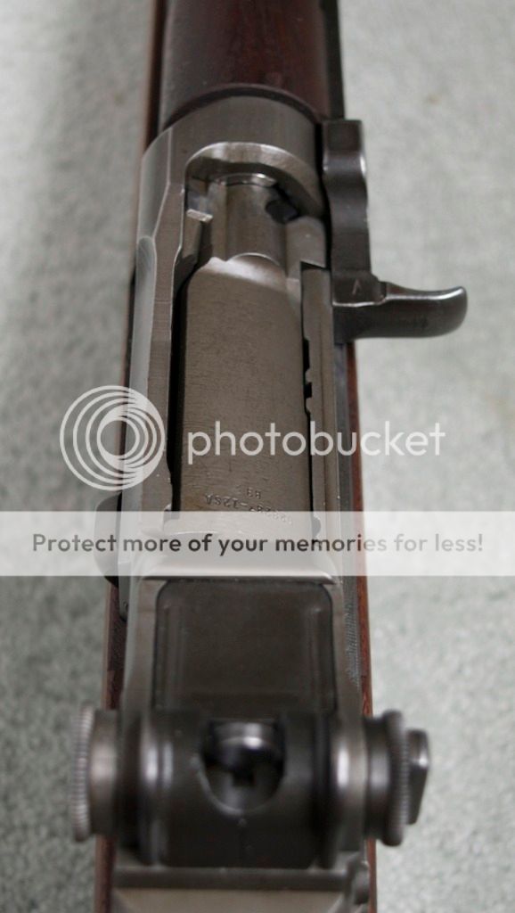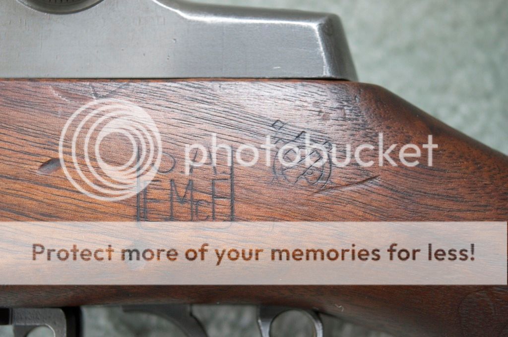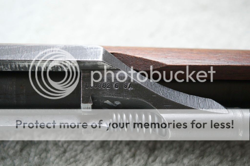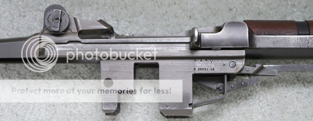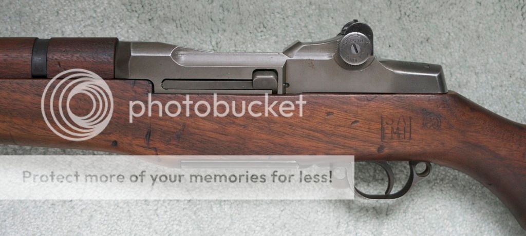 Here's one I've had for a little while now. Serial number places it in the late 1942 to early 1943 production range. The rifle features an Earl McFarland (EMcF) cartouched stock, un-cut operating rod, type II lock bar sight and early narrow base gas cylinder with the front sight seal intact. The only discrepancy is a WRA elevation knob that was left in place because the wear characteristics seem to match the rest of the rifle.